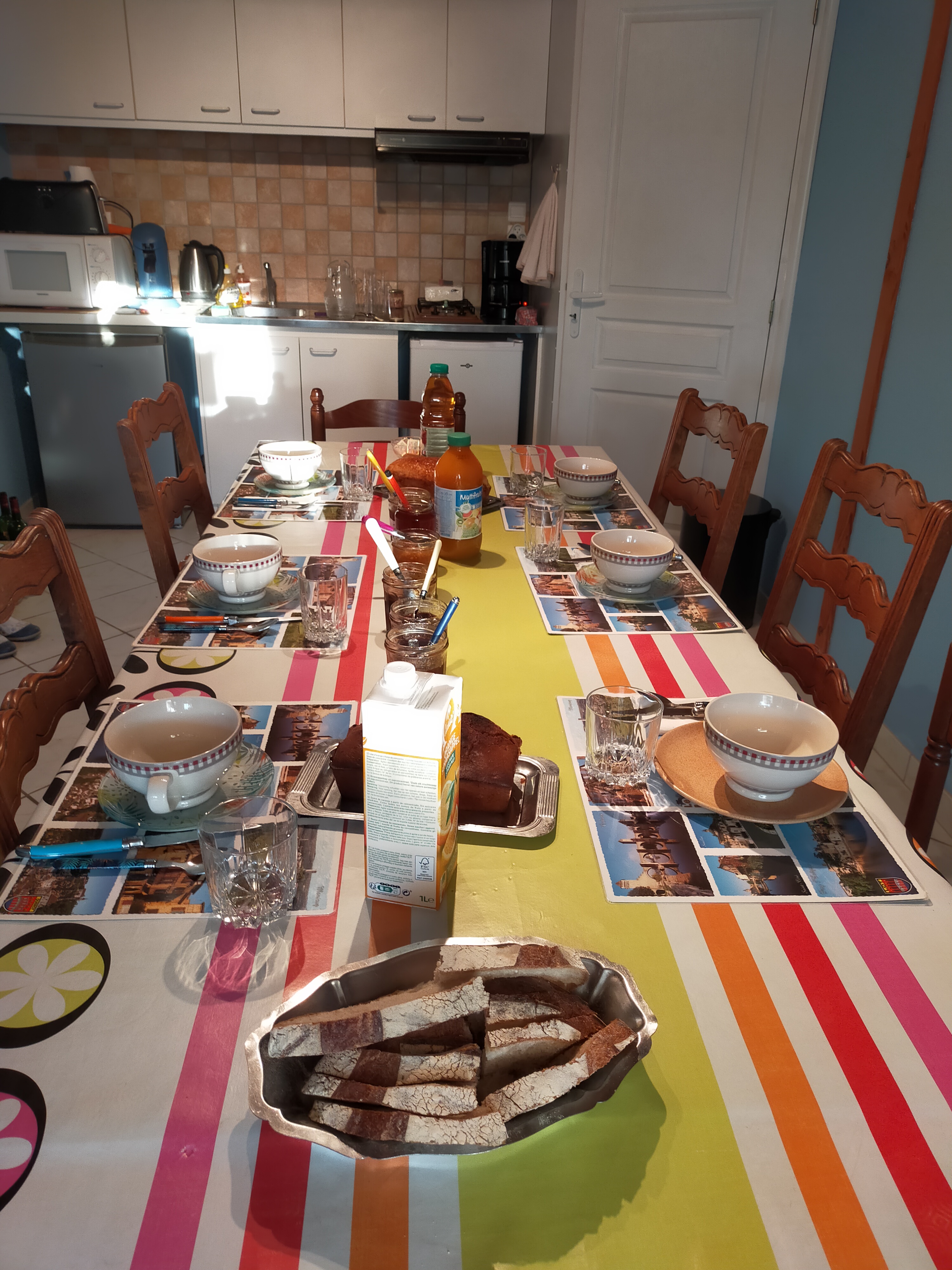 Trois chambres spacieuses dans une grange rénovée, typique du Quercy. Une chambre est accessible pour les personnes à mobilité réduite et toutes les chambres sont de plein pied. Cadre agréable avec le charme des vieilles pierres. Les chambres disposent d'une belle terrasse commune couverte, avec salon de jardin par chambre. Je vous sers le petit déjeuner avec des confitures, brioches, cake maison. Chaque chambre dispose d'un canapé cli-clac, et nous avons un lit parapluie si besoin pour les bébés.
